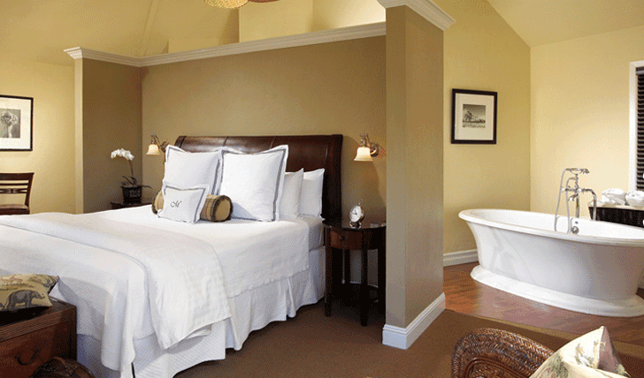 Discover the rural magic of Milliken Creek Inn and Spa, an elegant Napa hotel in California’s esteemed wine country. Surrounded by endless views of the valleys and the idyllic Napa River, it’s the perfect place to unwind surrounded by tranquil, pristine nature. With only 12 private suites, experience an intimate and luxurious stay here at the Milliken Creek. Do as little or as much as you desire here, start your day with breakfast on the terrace in the morning sun, take a bike out and explore the vineyards, or simply laze on your private terrace soaking up the views. Heaven. Hidden away in the heart of the Napa Valley, staying here is the epitome of getting away from it all. Easily accessible from the smaller airport of Sacramento and the larger international airport of San Francisco, Milliken Creek makes for the perfect private peace of paradise from the hustle and bustle of San Francisco. Milliken Inn offers 12 private cottages all designed in simply natural shades. The centerpiece of the rooms are the handsome king-size beds extravagantly outfitted with piles of down pillows, and the softest linens of supreme quality.